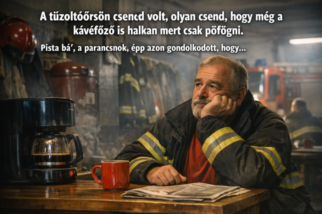 A tƱzoltóƑrsön csend volt, olyan csend, hogy mĂ©g a kĂĄvĂ©fƑzƑ is halkan mert csak pöfögni.