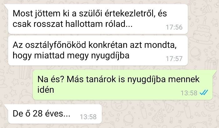9. A tanári pályán gyorsabban megöregszik az ember.
