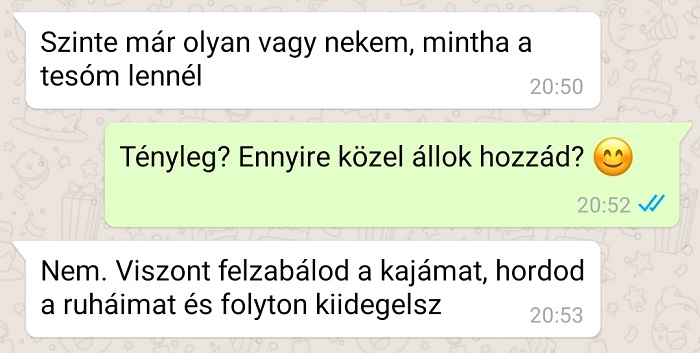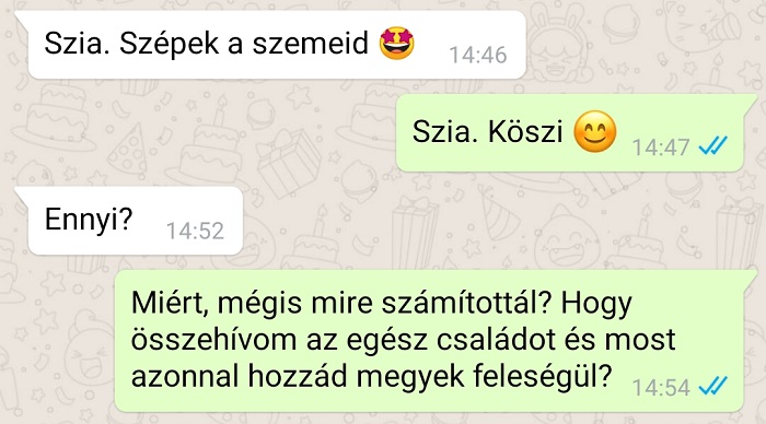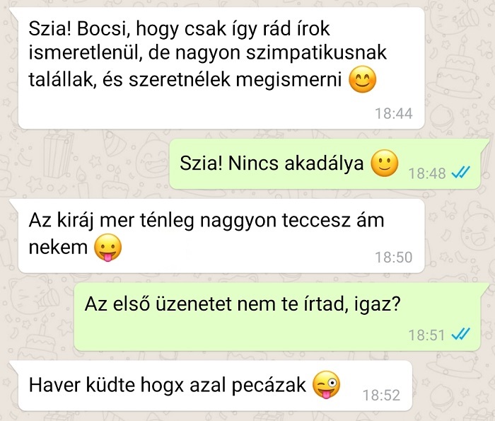 Az üzenet elküldésekor még nem tudhatjuk, hogy miféle válasz érkezik rá vissza. Ha jól ismerjük az adott illetőt, akinek üzentünk, akkor azért lehet némi elképzelésünk, de mivel nem látjuk a másik reakcióját az üzenetünk olvasásakor, ezért nem mehetünk biztosra. Olykor egészen fordulatos beszélgetések is kikerekedhetnek egy-egy átlagosnak induló üzenetváltásból is. Olyanok, amiket még a fordulatokkal és izgalmakkal teletűzdelt filmek rendezői is megirigyelnének. Ezúttal olyan üzenetváltásokba nyerhettek betekintést, amikben a végére maradt a fordulat. Az izgalmas hollywoodi filmek esetében is megszokhattuk már, azok számítanak igazán szórakoztatónak, amikben a végén következik be a csattanó, és ez hasonlóan érvényes ezekre a hétköznapi üzenetváltásokra is.