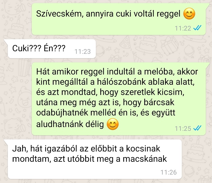 3. A férj szívből jövő vallomása, amit a feleség némiképp félreértett.