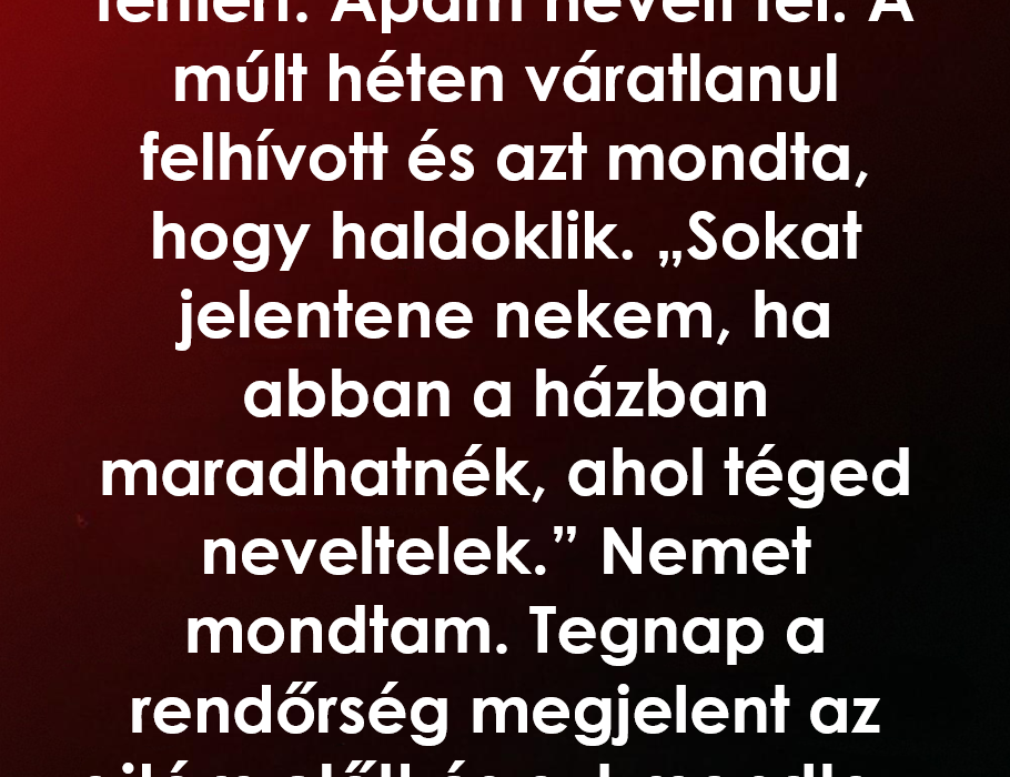 Bocsánatot kért. Nem azért, hogy feloldozást kapjon, hanem azért, hogy ne az ő hibáit cipeljem tovább a saját jövőmben. Azt szerette volna, ha nem az ő múltja írja át az én életemet.