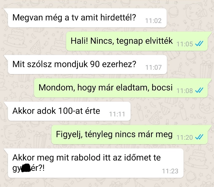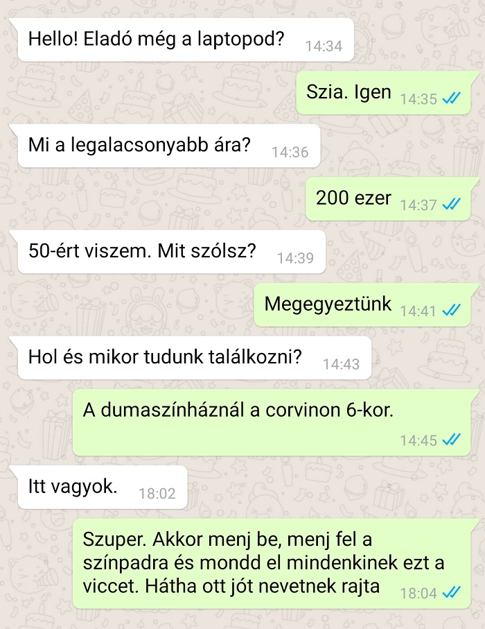 4. Hogy igazából ki rabolta kinek az idejét, azért az finoman szólva is megkérdőjelezhető. Mindenesetre a „kötelező” alkudozás megvolt.