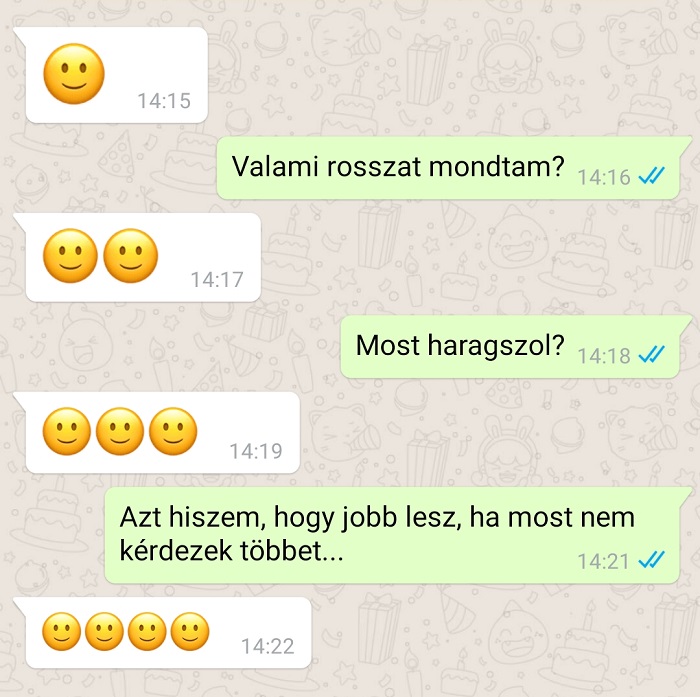 7. Bizonyos szituációkban egy mosolygós emoji baljósabb tud lenni, mint egy dühös emoji. Nos, ez is egy ilyen helyzet.
