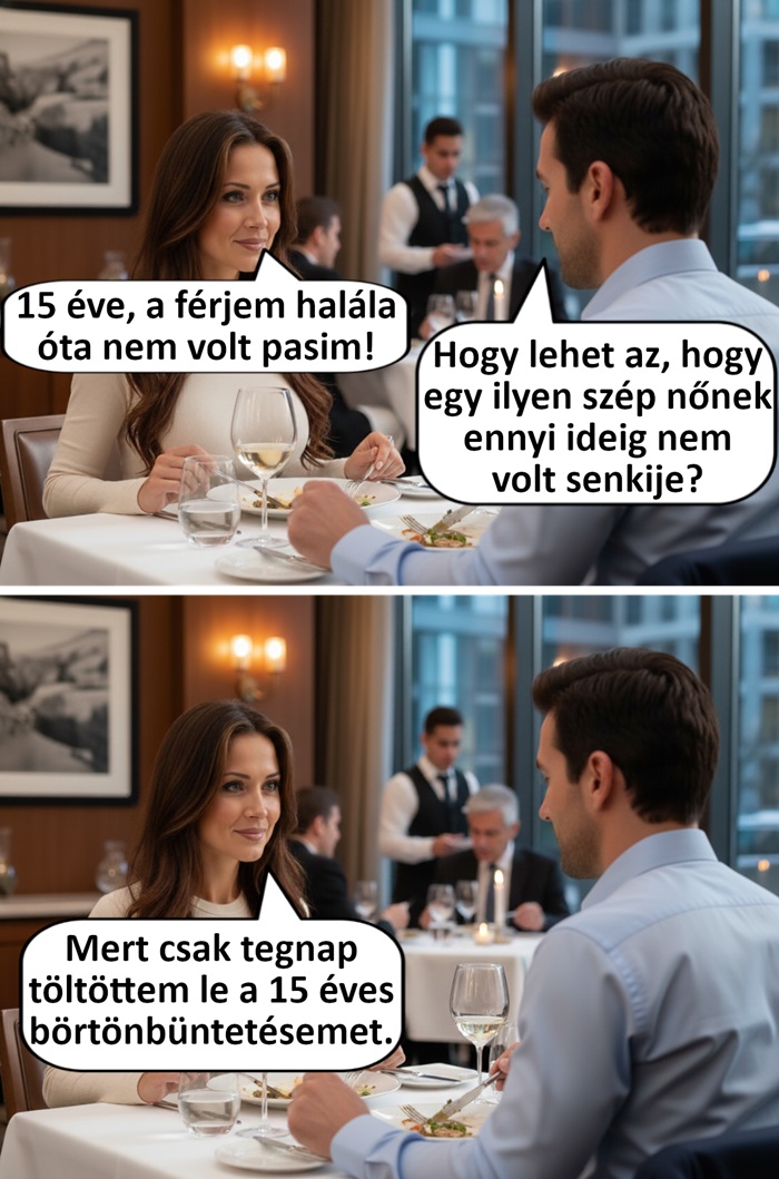 Vacsora közben rákérdeztem, hogy mi van a táskában, mire azt válaszolta, hogy a ruhái, ugyanis úgy gondolta, hogy ha jól sül el randink, akkor azonnal hozzám is költözik.