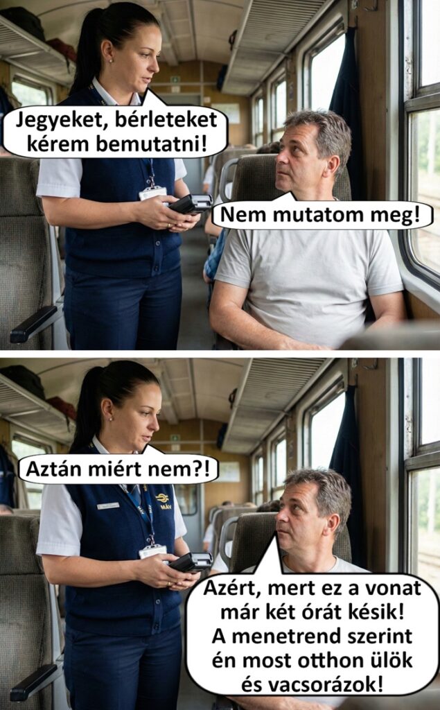 Utas: Hallod, amikor felszálltam, kajak bekopogtam a sofőröz, és mondtam neki, ott ülünk hátul az asszonnyal, hozzál már nekünk lécci 2 jegyet meg 2 kólát, de nem akar megmozdulni…