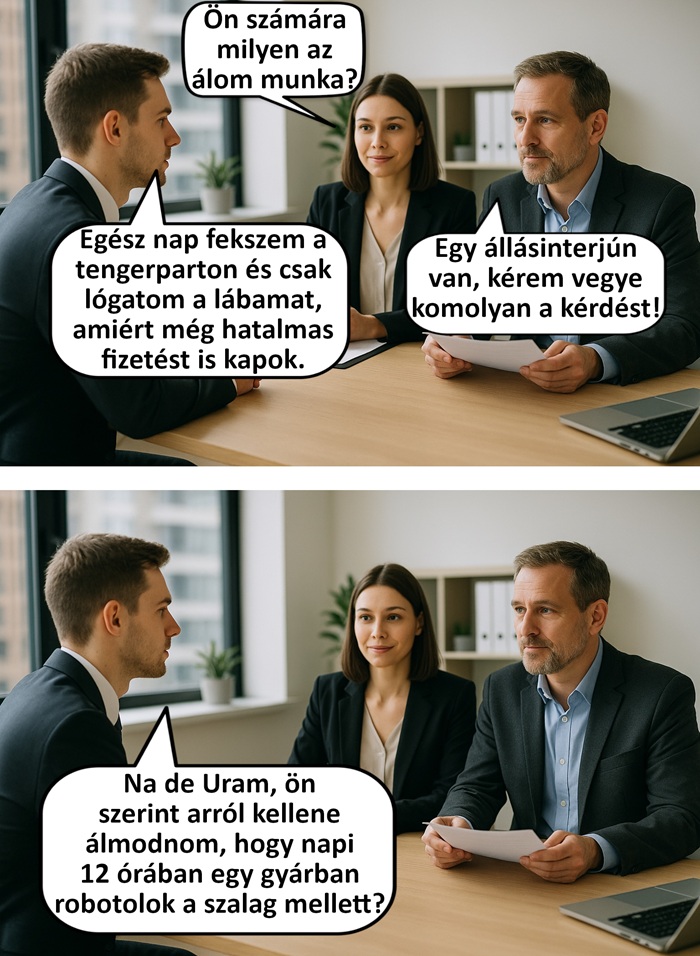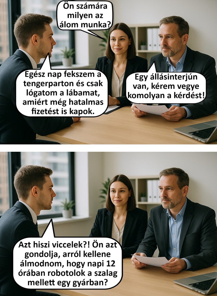 2. Egy állásinterjún ez a párbeszéd zajlott le köztem és a felvételizetők között, aminek az lett a vége, hogy megkaptam az állást.