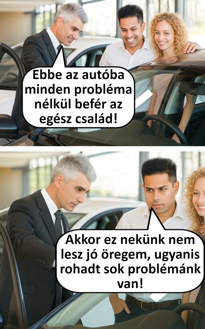 A férjem: Huh, annyira örülök, hogy ennyire egy rugóra jár az agyunk! Igen, vigyük vissza a kórházba, és hozzunk el helyette egy másikat! Hátha az jobb fej lesz és kevesebbet fog sírni!