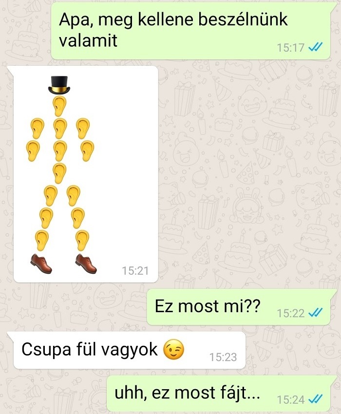 2. Életemben először rendeltem pizzát telefonon, de annyira izgultam, hogy így mutatkoztam be: „Jó estét kívánok, én pizza vagyok.” A srác a másik vonalon csak ennyit mondott: „Értem, akkor csomagolja magát dobozba, és mondom máris a címet, hogy hova vigye ki magát.”