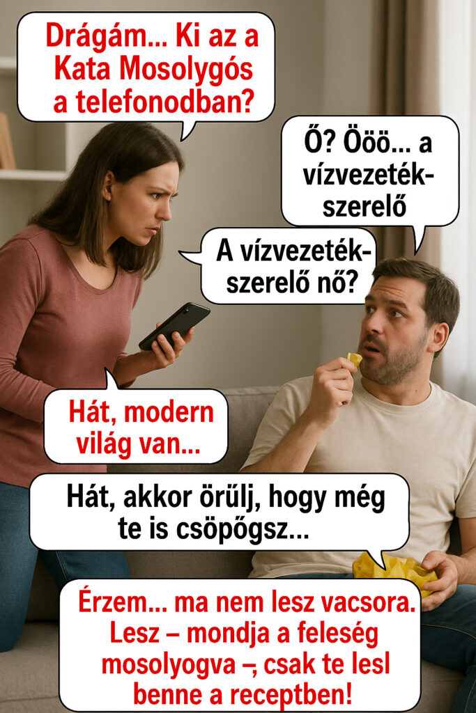 – Lesz – mondja a feleség mosolyogva. – Csak te leszel benne a receptben! 😂🔥