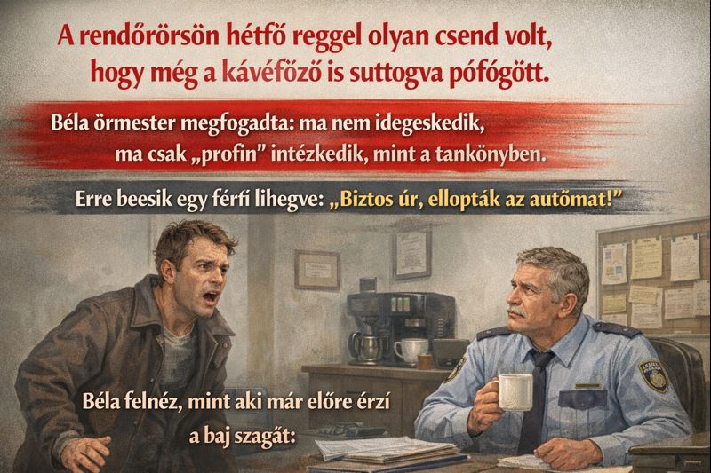 Béla őrmester megfogadta: ma nem idegeskedik, ma csak „profin” intézkedik, mint a tankönyvben.