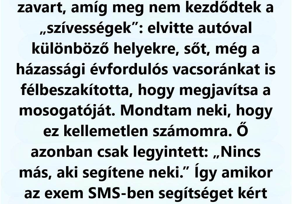 Először még ártatlannak tűnt. „Nem megy a Wi-Fi, rá tudnál nézni?” Utána: „Nem indul az autó, te mindig jól értettél a motorokhoz.” Aztán szépen szaporodtak a szívességek. Fuvar a reptérre. Segítség egy bérleti szerződés átnézésében. Dobozok felcipelése három emeletre. Késő esti hívások jelentéktelen vészhelyzetekről, amik valahogy mindig azonnali megoldást kértek.
