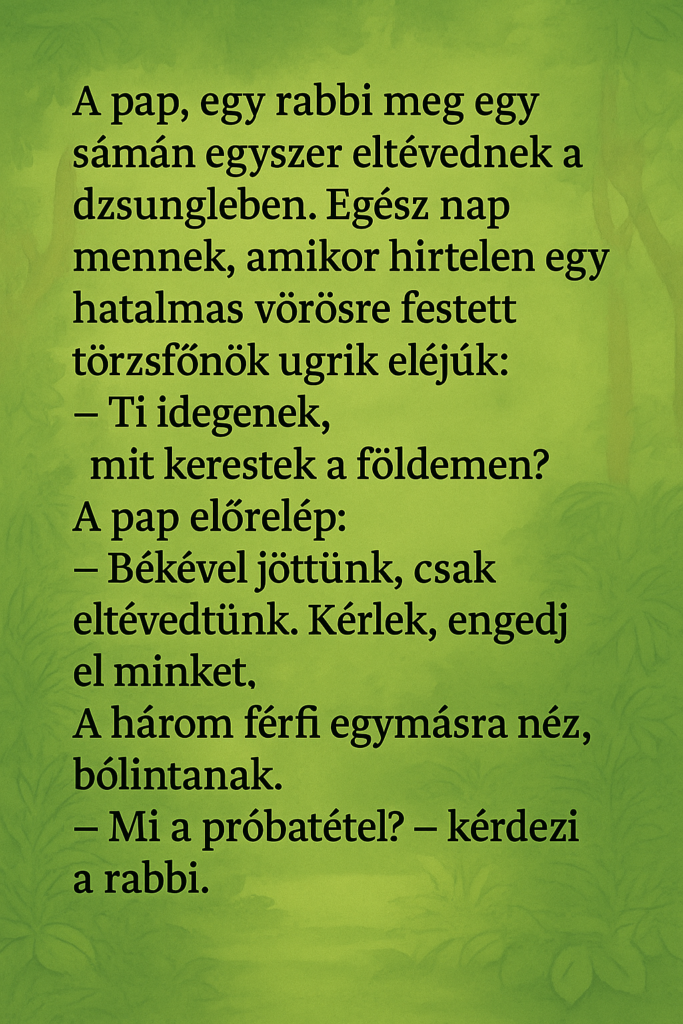 Egy pap, egy rabbi meg egy sámán egyszer eltévednek a dzsungelben.