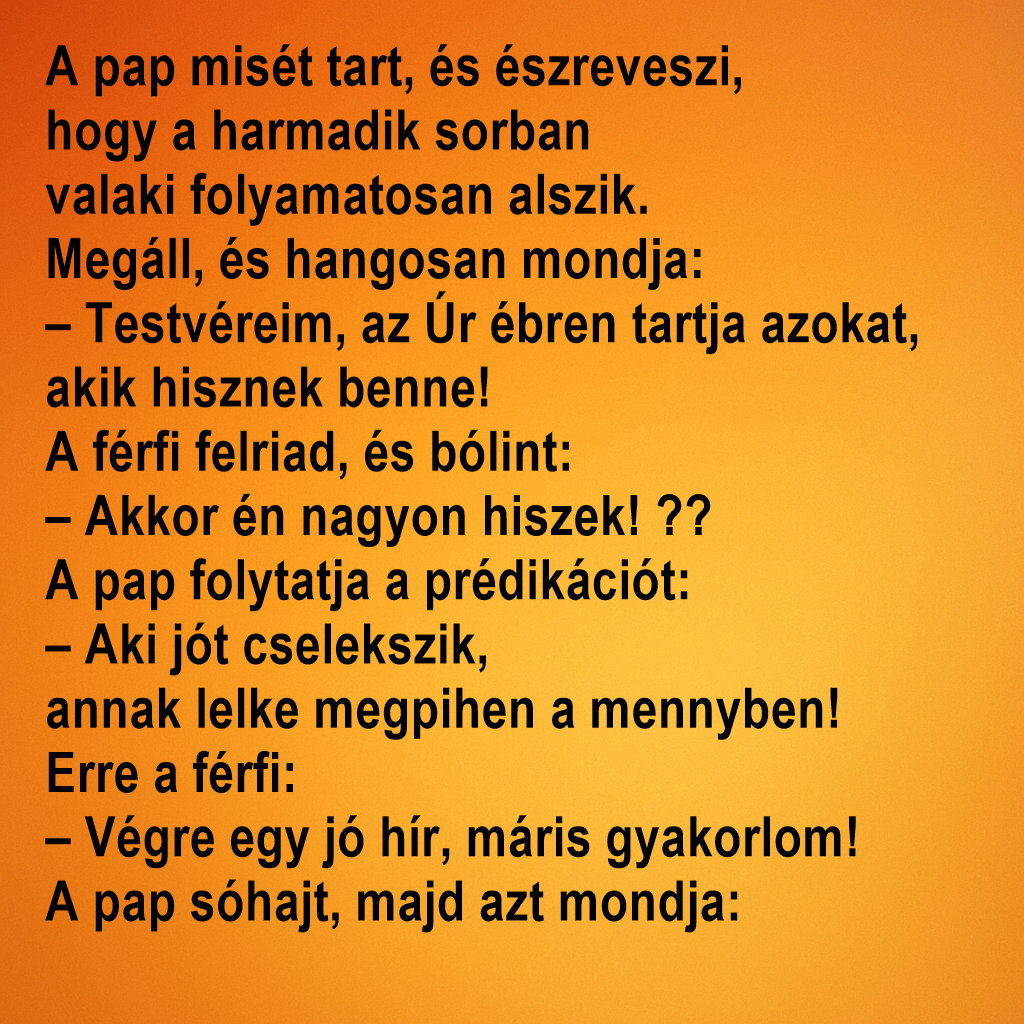 – Semmi baj, fiam, én is majdnem, amikor prédikáltam. 😆