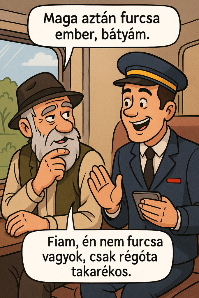 – Fiam, én nem furcsa vagyok, csak régóta takarékos.