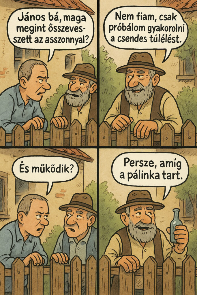 A székely bácsi reggel kimegy az udvarra, a kezében a kapa, de már messziről hallja, hogy az asszony morog bent a házban.