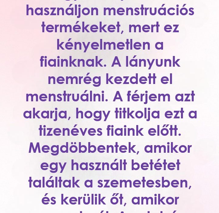 A férjem szerint a lányunknak abba kellene hagynia az intim betétek használatát, mert ez zavarja a fiainkat.