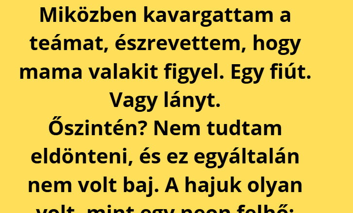 Miközben kavargattam a teámat, észrevettem, hogy mama valakit figyel. Egy fiút. Vagy lányt.
