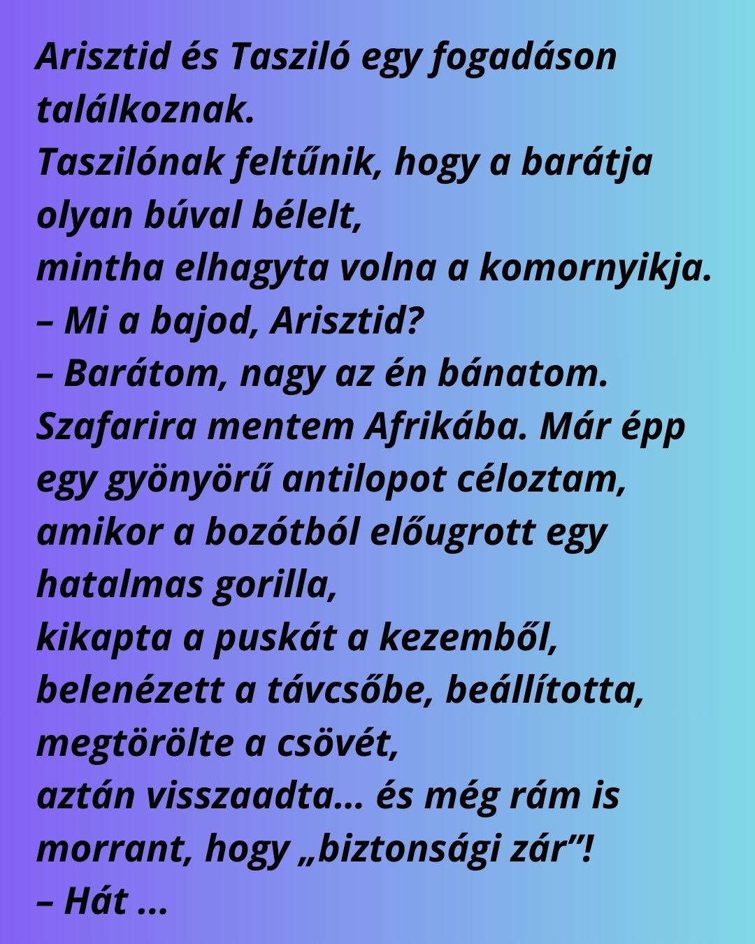Szafarira mentem Afrikába. Már épp egy gyönyörű antilopot céloztam,