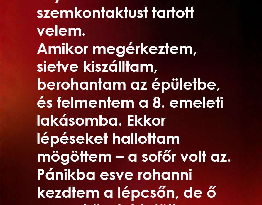 Amikor megálltunk a házam előtt, gyorsan kifizettem az utat, odaböktem egy fáradt köszönömöt, és kiléptem a hűvös éjszakába. A lift megint nem működött, ezért elindultam felfelé a lépcsőn, egészen a nyolcadikig. Félúton járhattam, amikor meghallottam a rohanó lépteket mögöttem, erősek és sietősek voltak, és visszhangoztak a szűk lépcsőházban.