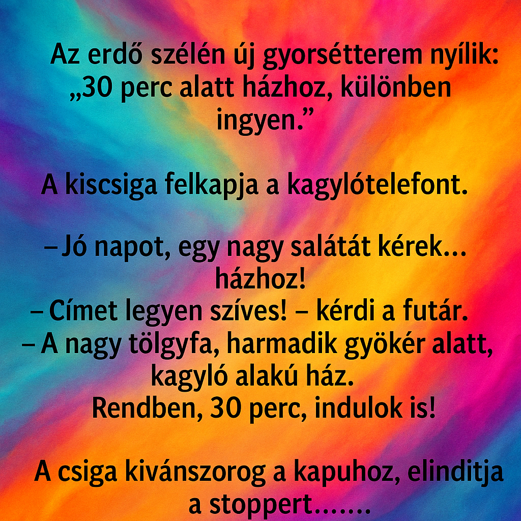 – Köszönöm! – bólogat a csiga, majd hozzáteszi: