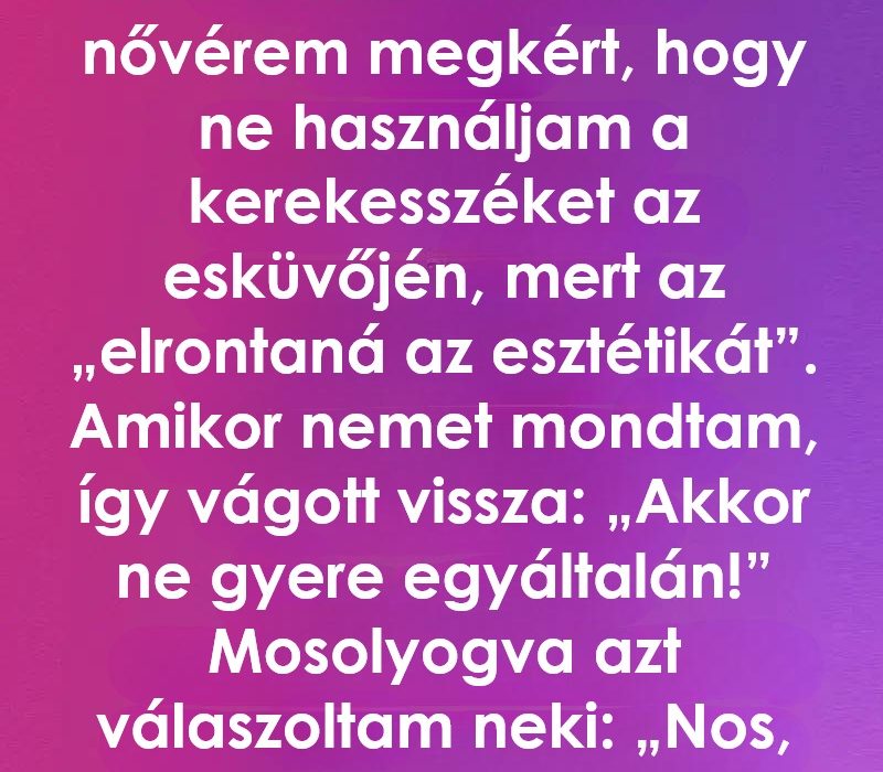 Nagyon fájt, mert életem minden fontos pillanatában mellette voltam. A kerekesszék nem kellék, része a mindennapjaimnak és az erőm jele, nem valami szégyellnivaló. Mégis meghoztam a döntést: nem fogom magam beleerőltetni egy olyan térbe, ahol nem lehetek önmagam.