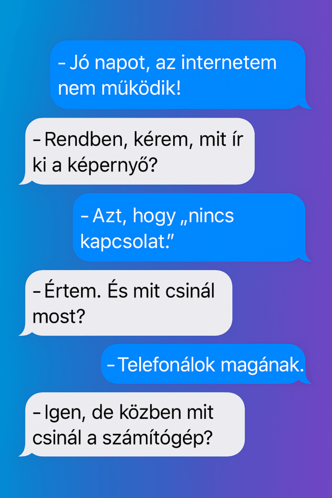 – Jó napot, az internetem nem működik!