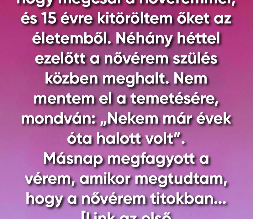 És tizenöt év után először engedte meg magának, hogy sírjon. Nem az árulás miatt, hanem a megértésért. Nem azért, ami elveszett, hanem azért, amit végre el lehetett temetni.