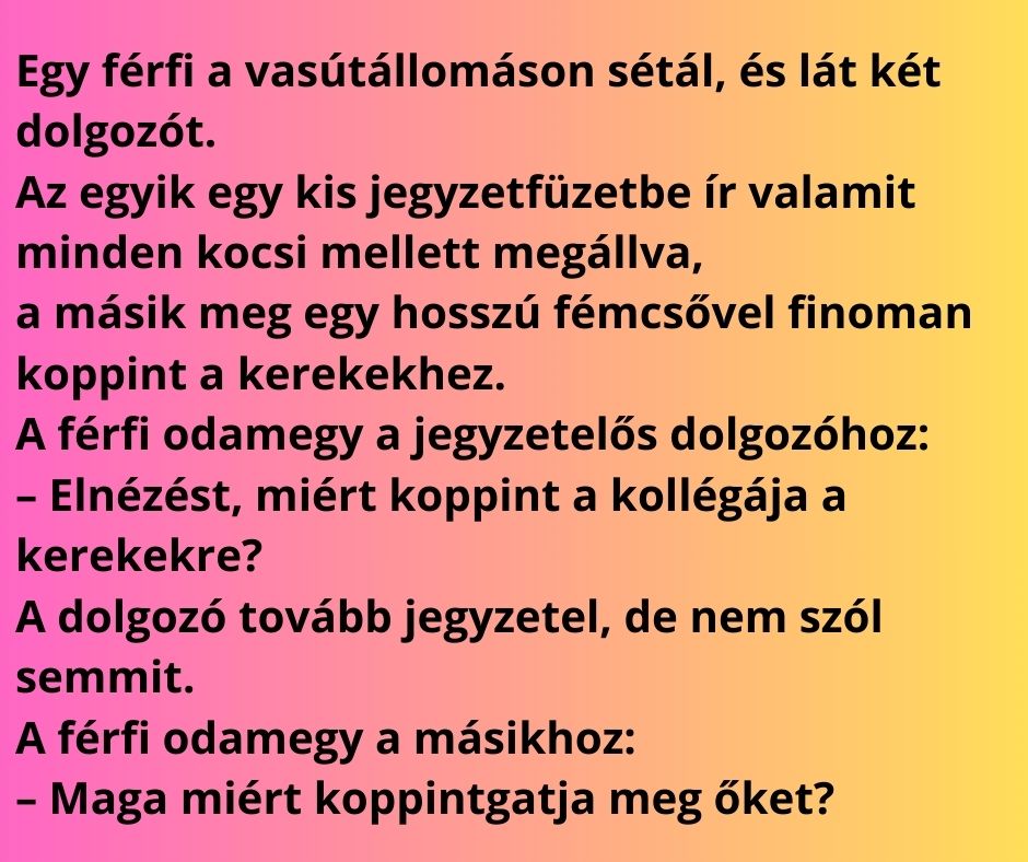 – Maga tudja, miért leheli be a kollégája a mozdonyokat?