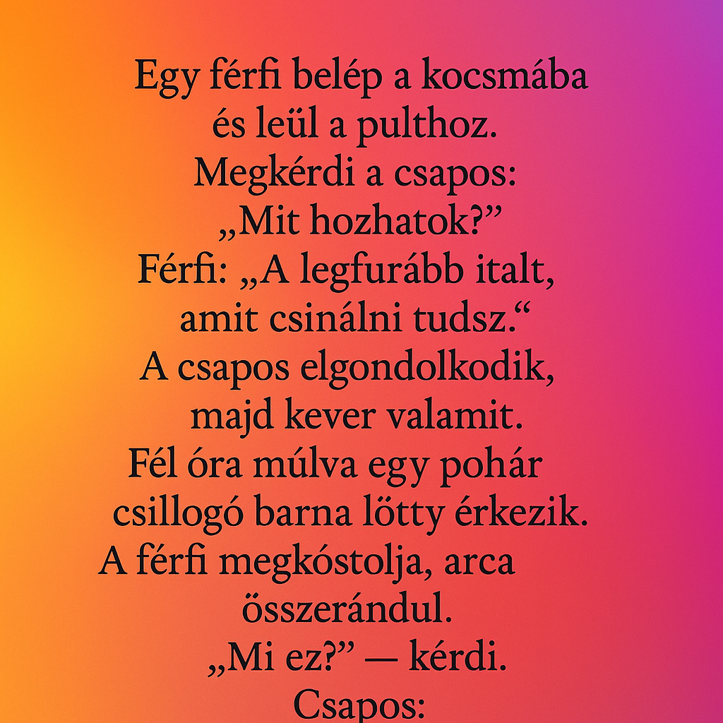 A férfi kifizeti, és odalépve azt mondja: „Legközelebb inkább a sima sört — az nem emlékeztet a számlákra.”