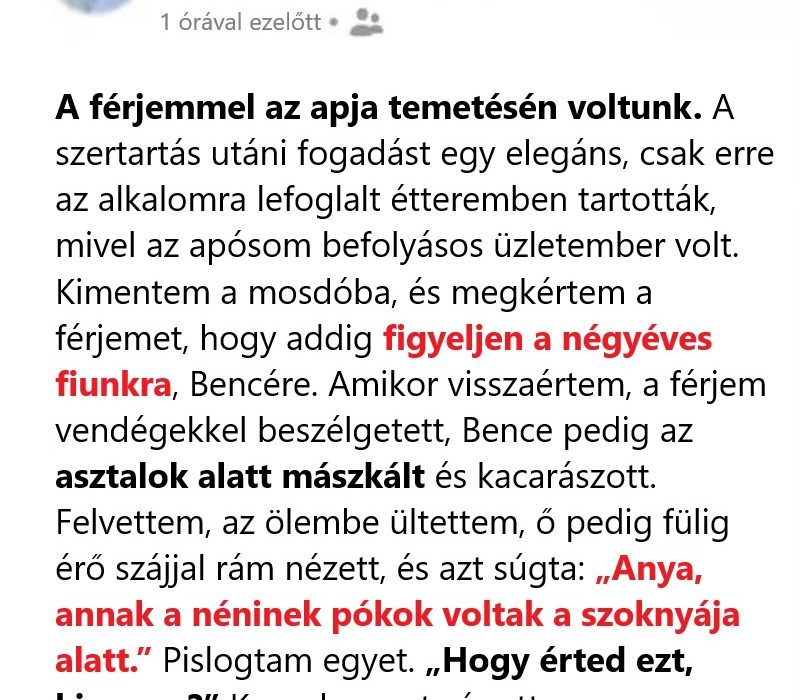 Az a törékeny mondat, amit egy temetési asztal alatt suttogott el, nem szétrombolta a családunkat, hanem megmentett minket. Egy gyerek őszinte szavai, amelyeket még nem béklyóz a felnőttek félelme és tagadása, kulccsá váltak. Kinyitották azt az ajtót, amelyen addig féltem átlépni.