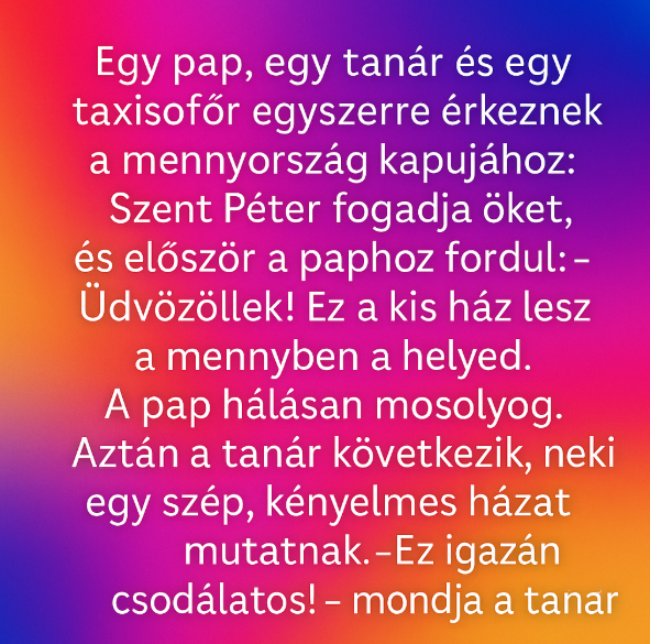 Egy pap, egy tanár és egy taxisofőr egyszerre érkeznek a mennyország kapujához.