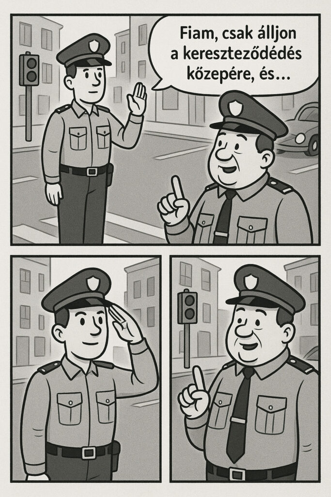 – Fiam, csak álljon a kereszteződés közepére, és intse a kocsikat!