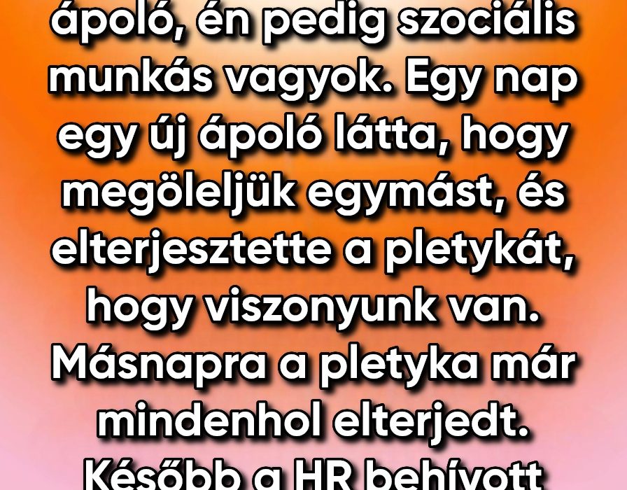Másnap már suttogásokat hallottunk. Valaki megemlítette, hogy két dolgozó ölelkezett a folyosón. Aztán valaki továbbadta, kicsit kiszínezve. Rövid idő alatt egy ártatlan, családi pillanatból gyanús sztori lett a visszamondásokban.