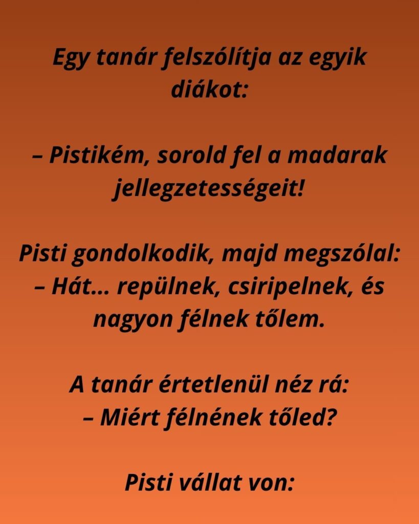 – Hát… repülnek, csiripelnek, és nagyon félnek tőlem.