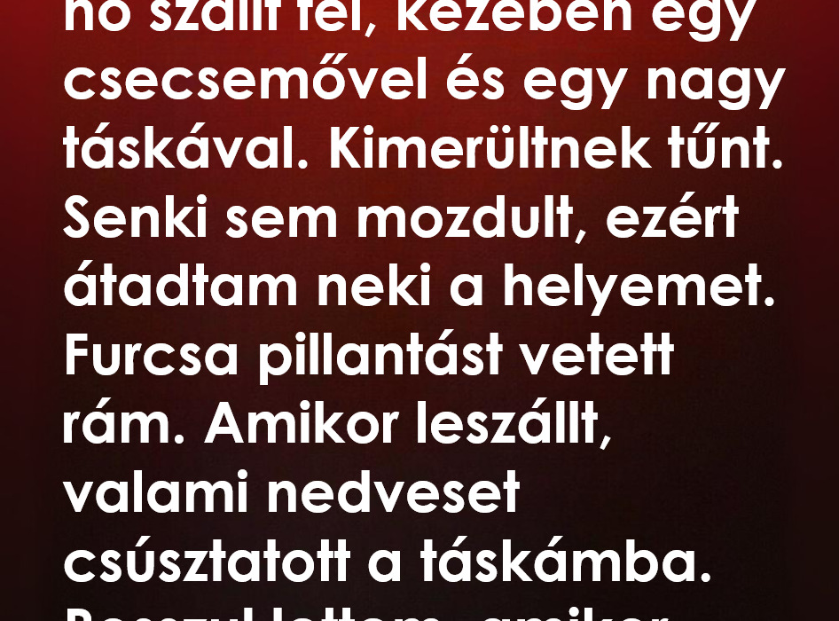 Ekkor felszállt egy nő, egyik karján egy kisbabával, a másikban egy nehéz táskát cipelt. Fáradt, karikás szemei és meghajlott tartása elárulta, nagyobb súlyt visel, mint amit láttunk rajta. Ami igazán megfogott, az a körülötte elülő csend volt.