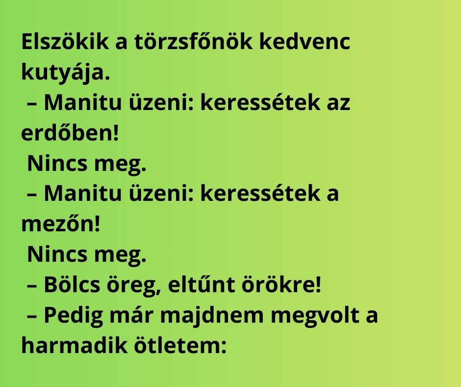– Pedig már majdnem megvolt a harmadik ötletem: „nézzétek meg, nincs-e otthon”.