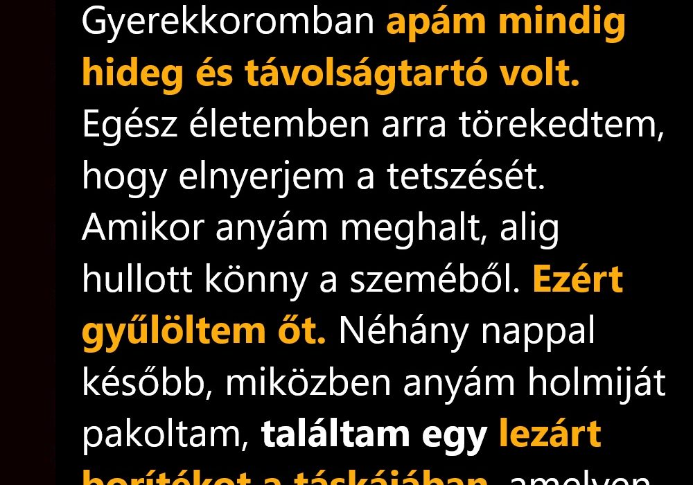 Mert bármit is írt a levél, ő ott volt. Minden lehorzsolt térdnél. Minden iskolai hazahozatalnál. Minden éjszakai láznál. Aláírta az engedélyeket, fizette a számlákat, megjelent, amikor kellett.