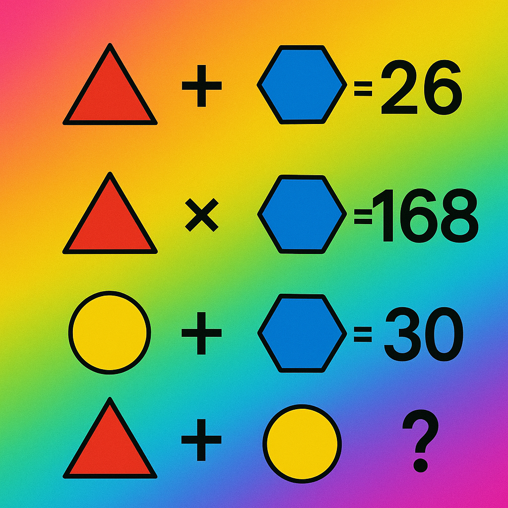 „Itt egy színes logikai fejtörő, ami első ránézésre egyszerűnek tűnik, mégis sokan elakadnak rajta. A szabály pofonegyszerű: minden alakzat egy számot ér, és az egyenletek alapján kell kitalálnod, mennyi az értékük. Nézd meg figyelmesen a sorokat, és próbáld meg kiszámolni, mi a helyes eredmény az utolsó sorban! Te mennyi idő alatt jutsz el a megoldásig?”