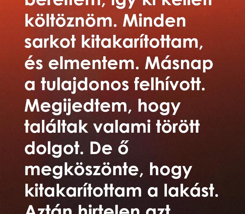 Ehelyett köszönetet mondott, amiért tisztán hagytam a lakást.