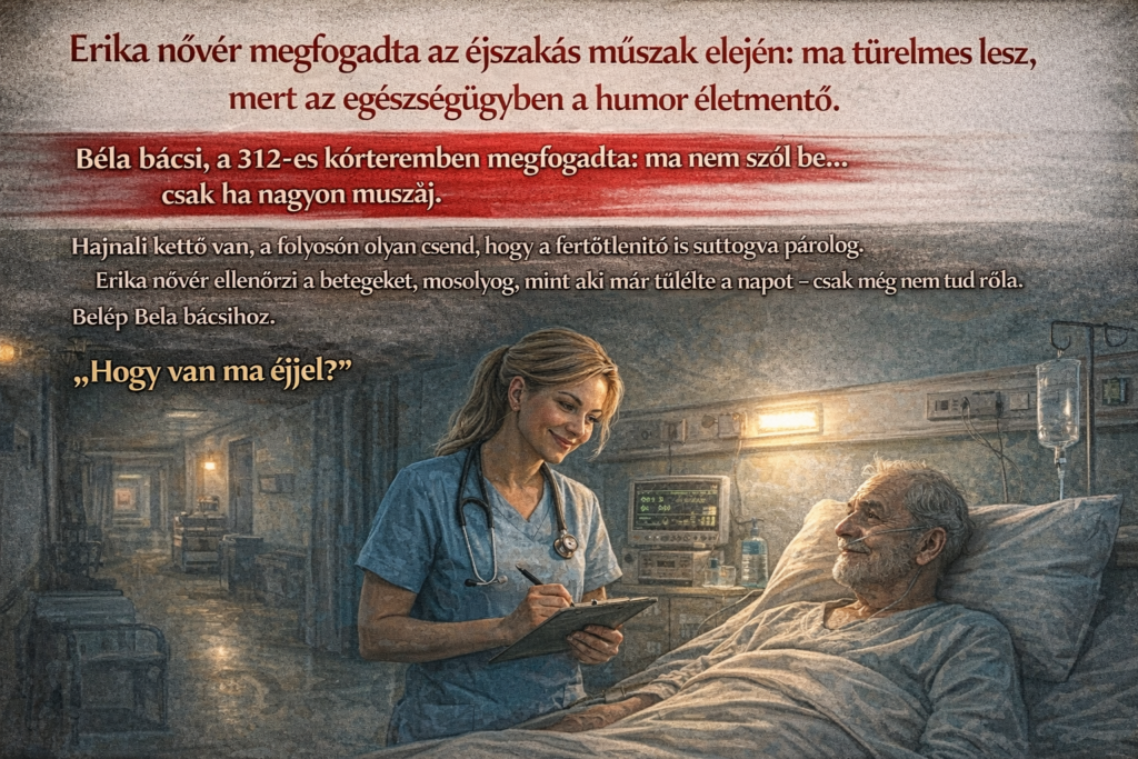 Hajnali 2-kor a nővér csak ennyit kérdezett: ‘Hogy van ma éjjel?’… Béla bácsi válasza olyan volt, hogy még a fertőtlenítő is megállt egy pillanatra 😳🩺