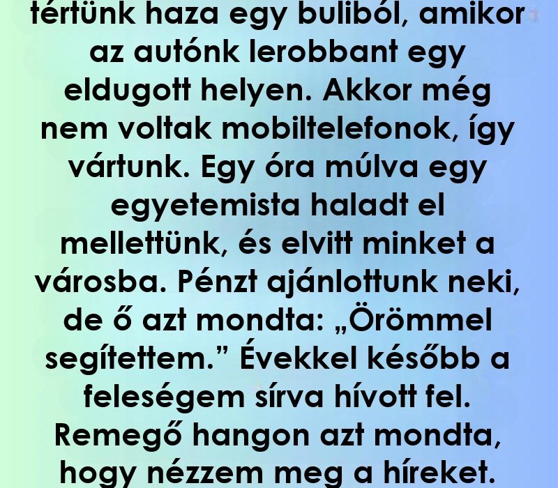 Amikor fizetni akartunk a segítségéért, csak mosolygott, és azt mondta: „Add tovább.” Ez a mondat és a kedvessége mélyen megérintett minket, mégis, az idő múltával a történet lassan elhalványult bennünk.