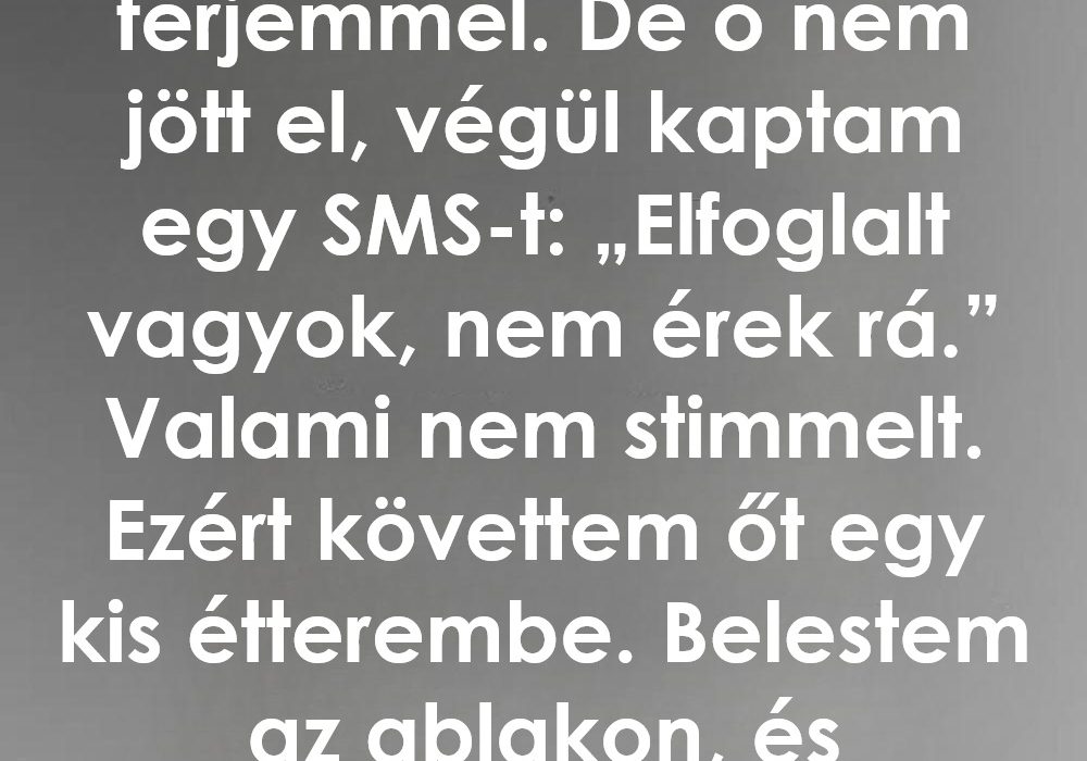 Az este viszont egyre csak telt, ő pedig nem jött. Végül egy rövid üzenet érkezett: „Elfoglalt vagyok, nem érek oda.” A gyomrom összeszorult. A várakozás csalódássá vált, a csalódás gyanússá, és nem tudtam elhallgattatni a rossz érzést, amely egyre erősebben feszített belül.