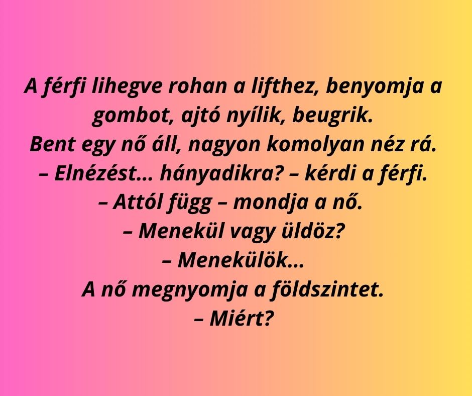 – Attól függ – mondja a nő. – Menekül vagy üldöz?