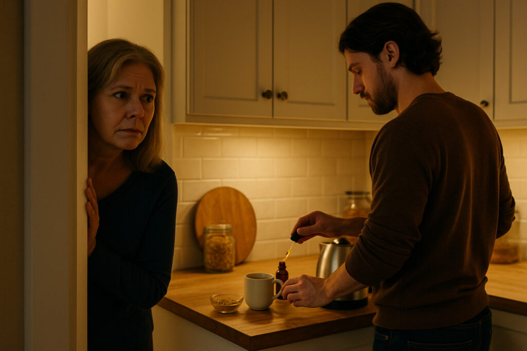 „Mrs. Carter” mondta halkan. „Amit iszik, erős nyugtatót tartalmaz. Ha valaki ezt naponta adja, memóriagondokat, függőséget, szellemi leépülést okozhat. Aki ezt készíti, nem segíteni akar az alvásban.”