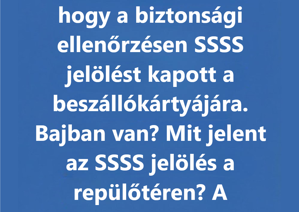 Az „SSSS” a Secondary Security Screening Selection rövidítése. Ez egy jelölés, amit az Egyesült Államok közlekedésbiztonsági hivatala (TSA) használ, és azt jelenti, hogy az utas további biztonsági ellenőrzésre van kiválasztva a beszállás előtt. A legtöbben azért lepődnek meg rajta, mert erről általában nem kapnak előzetes értesítést. Sokszor csak a reptéren derül ki, amikor az ellenőrzés a szokásosnál tovább tart.