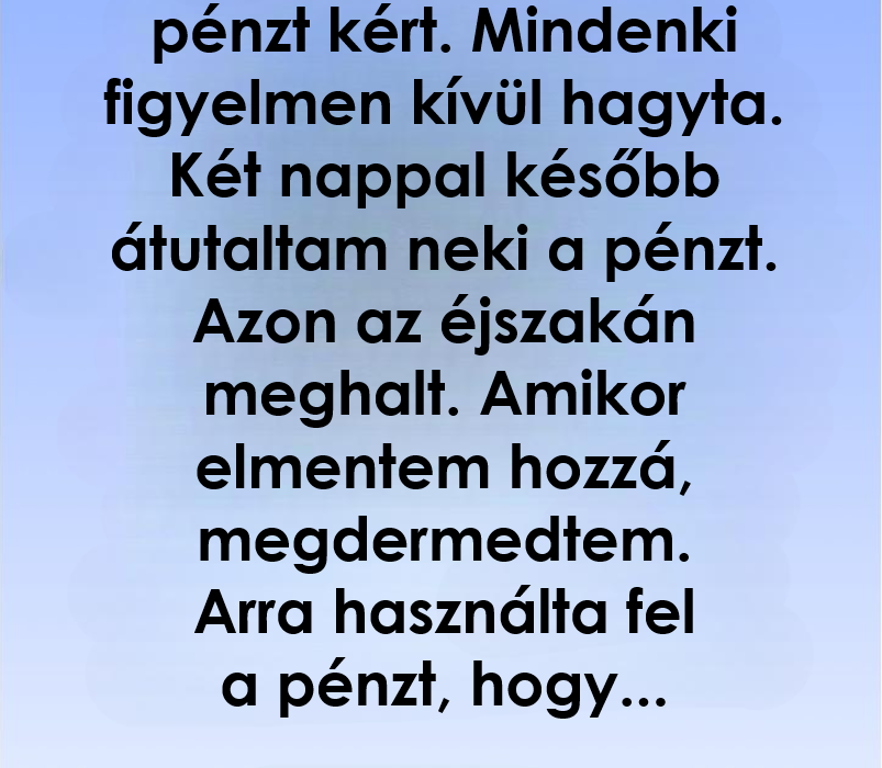 A pénz nem neki kellett. Az volt az utolsó ajándéka nekünk, a búcsúja, ahogyan ő tudott szeretni.