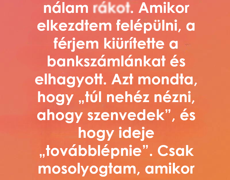 Még a betegség előtt éreztem a változást, a késő esték, a fagyos csendek, a semmitmondó magyarázatok. Egy halk belső jelzés arra kért, védjem magam, ezért a megtakarításaimat a saját nevemen lévő számlára tettem.