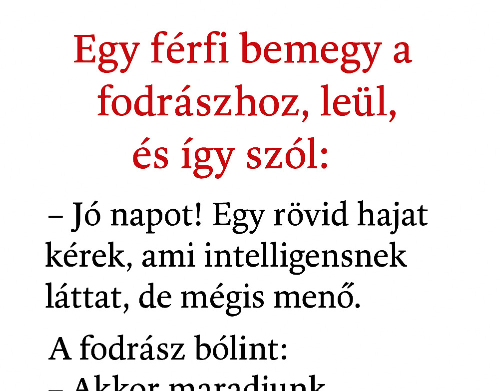 Egy férfi bemegy a fodrászhoz, leül, és így szól: