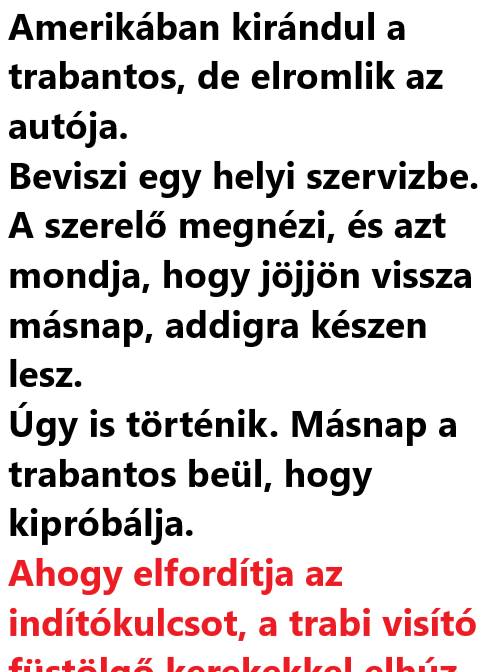 Úgy is történik. Másnap a trabantos beül, hogy kipróbálja.