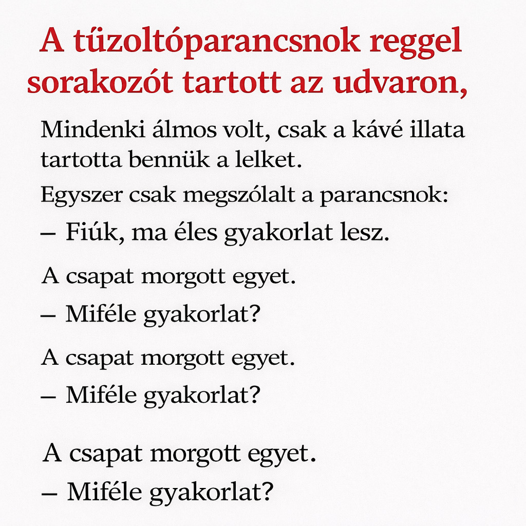 A tűzoltóparancsnok reggel sorakozót tartott az udvaron.